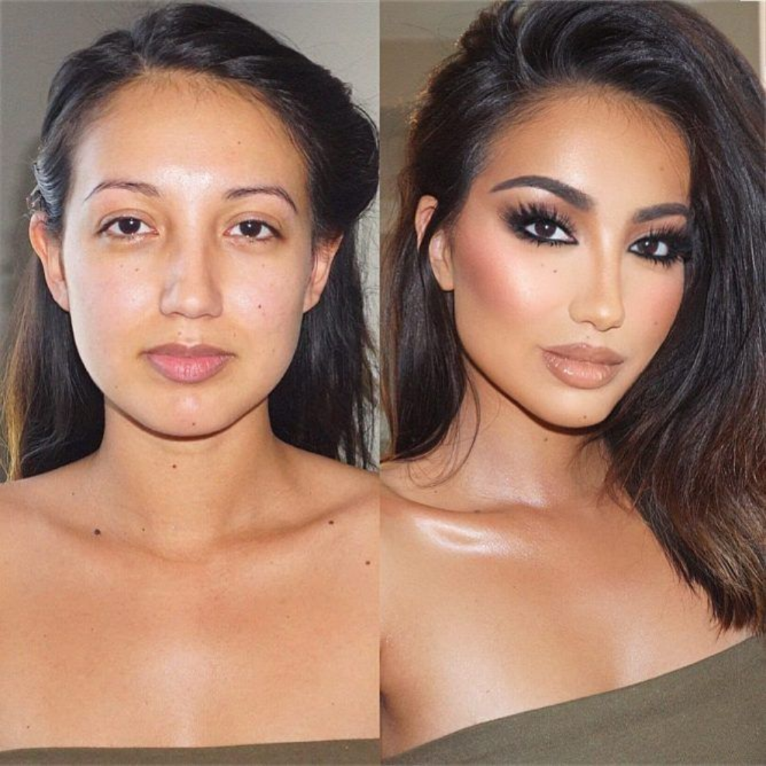 - BEFORE: Visible imperfections, uneven tone, and shine.